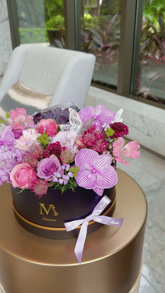 Premium Purple Flowers & Fruit Box