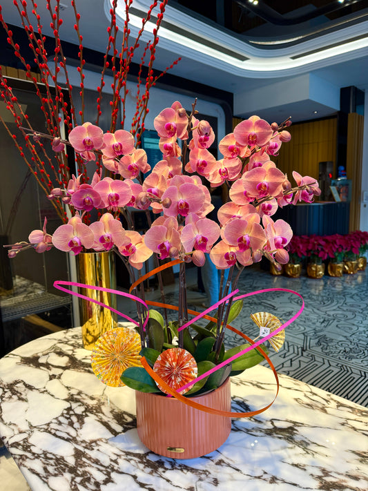 迎春接福 - 五株粉紅色蝴蝶蘭花