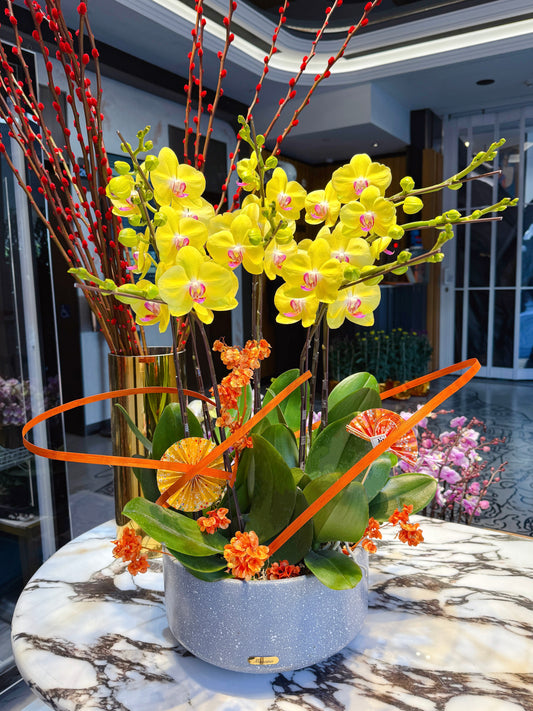 金玉滿堂 - 賀年黃色蝴蝶蘭花擺設