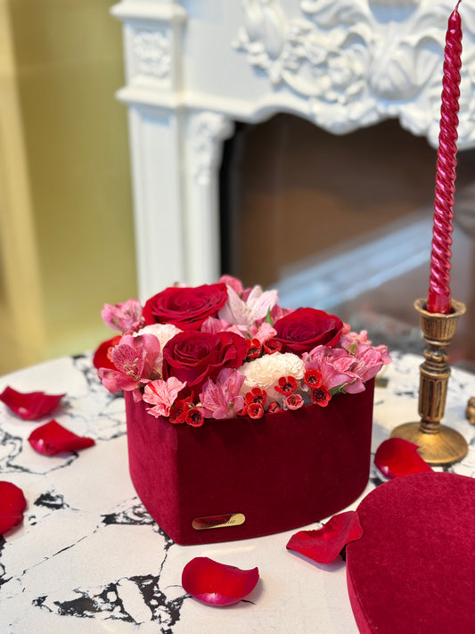 Valentine’s Day Preserved Rose Flower Box with Balloon - Barbie Pink Mix