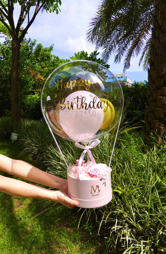 Valentine’s Day Preserved Rose Flower Box with Balloon - Pink