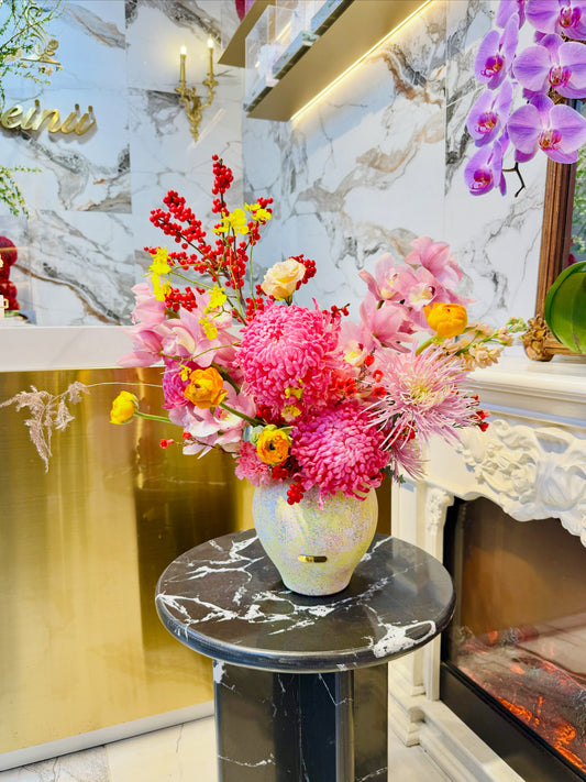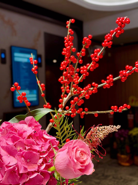 Jessica - Red & Pink Flower Arrangement (Sakura, Rose, Orchid)