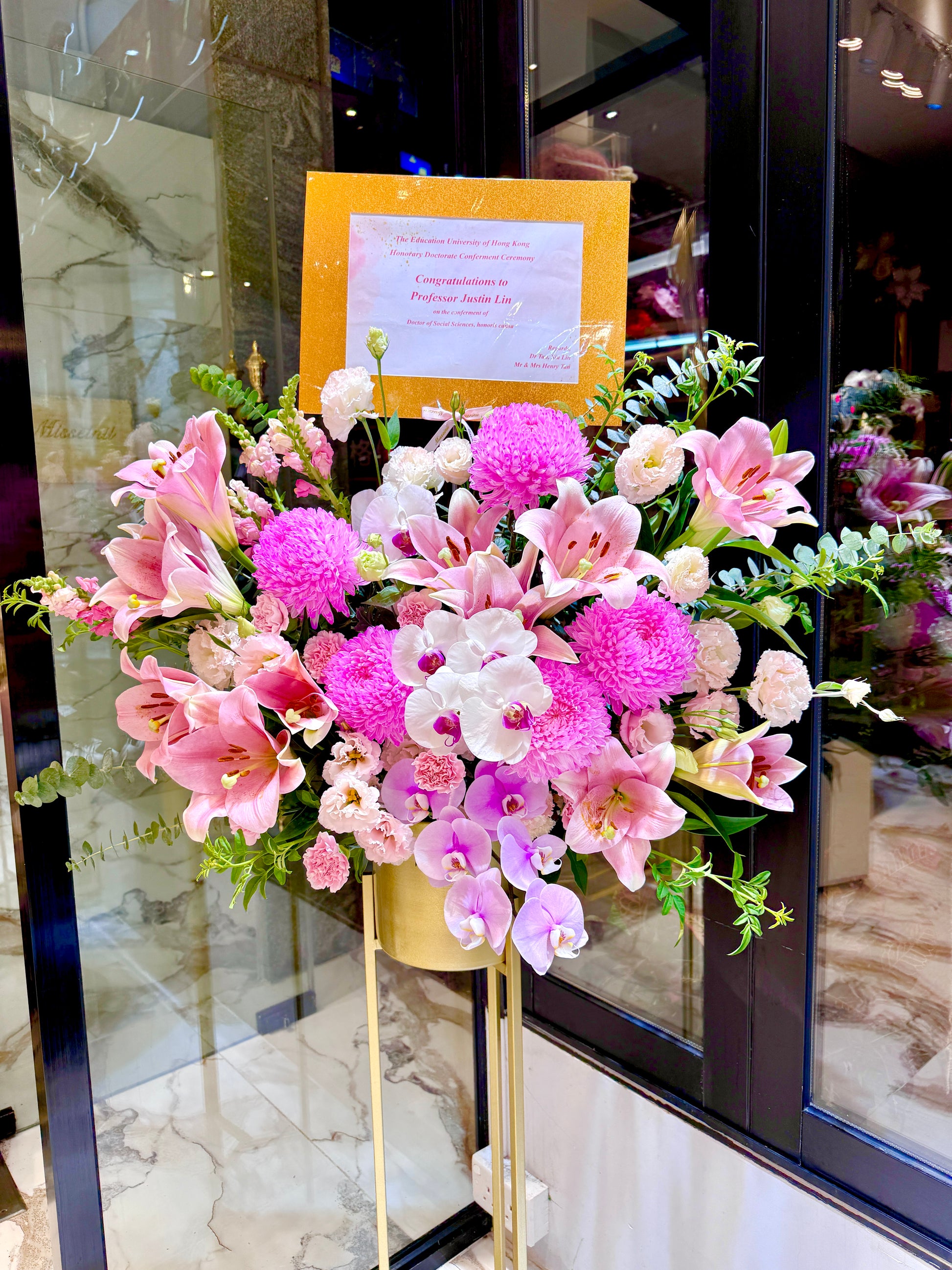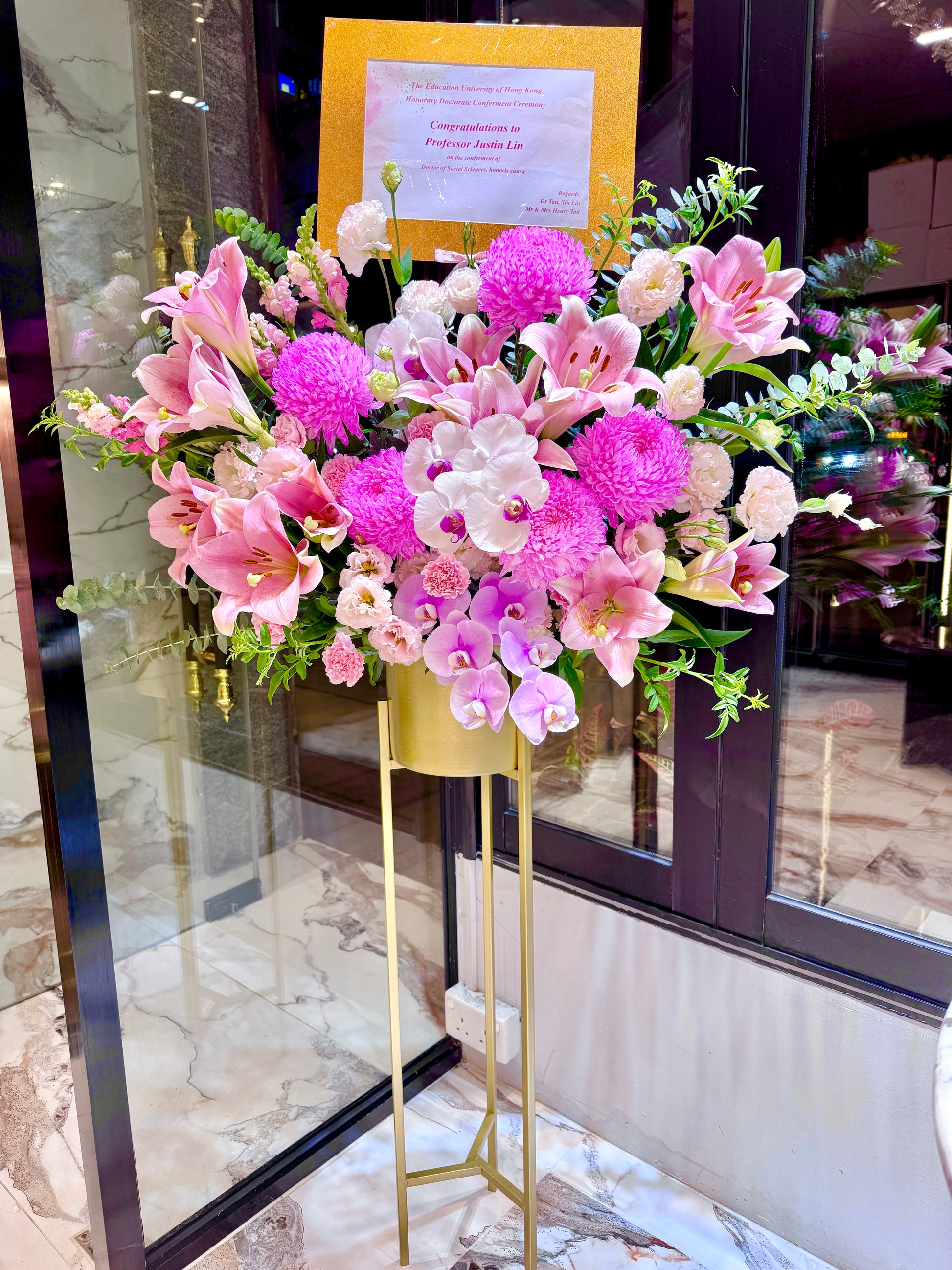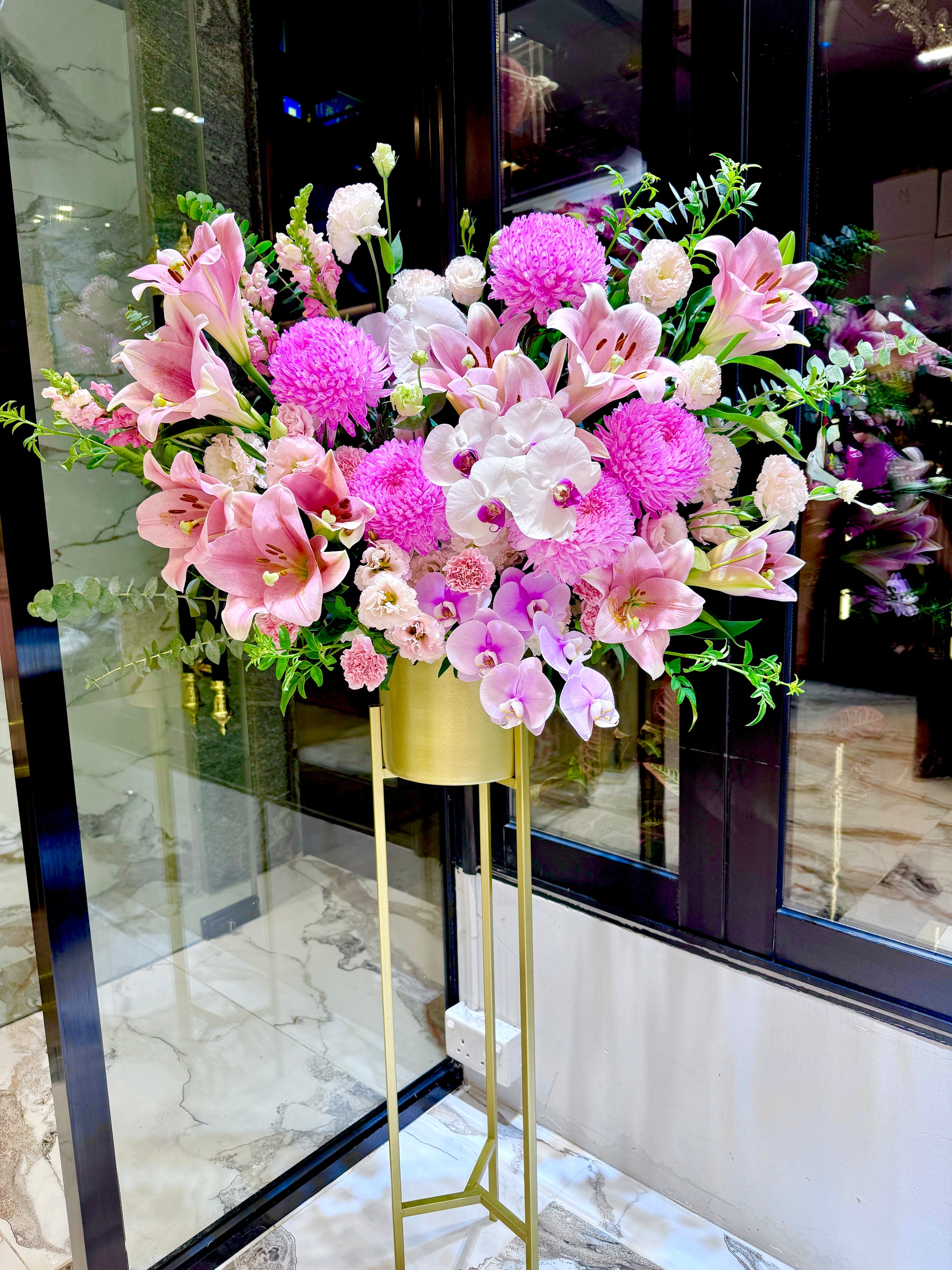 🌷粉紅百合 · 牡丹菊 · 蝴蝶蘭|祝賀花籃
