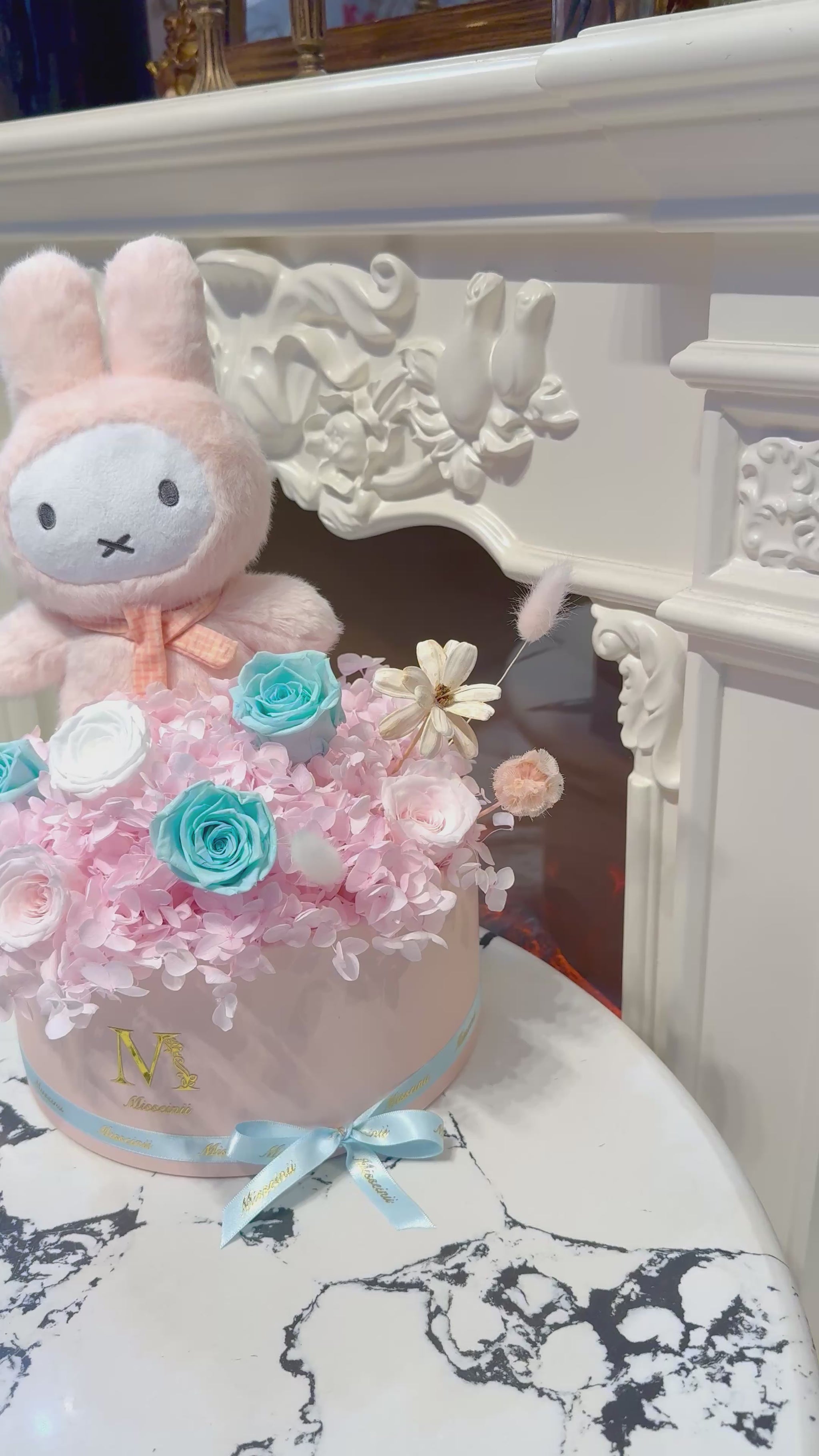 Miffy 淺粉紅 + 淺藍色 玫瑰永生花盒 🐰💖🏡